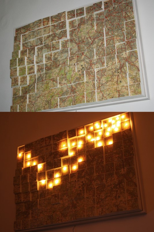 Vintage Map, LED lights, Polyurathane Blocks, Board